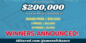 The 2026 Iditarod Winter Raffle drawing was held at 4:00 p.m. on Sunday, April 19, 2026, during the Mat-Su Outdoorsman Show in Wasilla, Alaska—a fitting